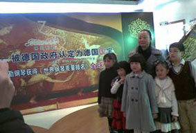 整個博蘭斯勒展區(qū)在經典“飛天”圖案背景的烘托下,顯得大 氣磅礴、金碧輝煌,烘托出了博蘭斯勒鋼琴享有“黃金音色”之稱 的美譽,并吸引了眾多人士前來參觀,甚至有其它世界名品的參展 商與展會工作人員都特地前來展區(qū)一睹博蘭斯勒鋼琴的奢華風范與 典雅氣質。其中,價值288.8萬并全球僅限一臺的博蘭斯勒 fisherArt系列三角鋼琴更是成為了全場的超級明星。它經典大氣 的外觀、精致絕倫的做工、無與倫比的“黃金音色”以及油畫大師 獨一無二的靈感創(chuàng)作,無一不使人驚嘆。不少觀眾得知它的到來后 ,專程趕來與其合影留念,近距離感受這個被稱為鋼琴中的“勞斯 萊斯”,歐洲皇室貴族的超級奢侈品——德國國寶博蘭斯勒鋼琴。 19日,展會舉行到第三天時,由5名小學生舉行的現(xiàn)場鋼琴演奏表 演,更是將整個會場氣氛推至頂峰,其中兩位小朋友的一曲四手聯(lián) 彈,更是轟動全場。前來參觀欣賞的家長及學生無不嘖嘖稱贊,同 時對博蘭斯勒及其旗下品牌歐米勒、塞勒都表現(xiàn)出了極大的興趣, 不少家長還紛紛表示要去當?shù)亟涗N商東莞樂博琴行的店中做進一步 的了解挑選。