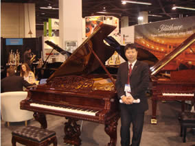 在美國2008 年1月17日,一年一度的全球樂器制作界盛會(huì) —2008 NAMM SHOW,在美國南加利福尼亞洲的阿納海姆會(huì)議 中心隆重開幕。阿納海姆會(huì)議中心是西海岸最大的會(huì)議中心同時(shí)也 是世界最大的會(huì)議中心之一。展館共有5個(gè),共有813,607平方英 尺,可同時(shí)容納、接待103150人,展館總共可安排2890個(gè)展位 。全球樂器廠商及世界各國經(jīng)銷商云集于此,展示發(fā)布最新的產(chǎn)品 及行業(yè)信息。NAMM SHOW不但是音樂制作工業(yè)展示其各種新品 樂器的舞臺(tái),而且還提供給全球各個(gè)經(jīng)銷商和制作商交流和成功發(fā) 展的平臺(tái),同時(shí)也是全球音樂人的一次盛大聚會(huì)。會(huì)場(chǎng)內(nèi),人流涌 動(dòng),各大廠商均在NAMM SHOW上同期全球發(fā)布其最新、最熱門 以及最具前瞻性、革命性的產(chǎn)品。德國博蘭斯勒鋼琴公司及博蘭斯 勒(中國)總經(jīng)理方陽作為其VIP會(huì)員受邀前往參加展會(huì)。博蘭斯 勒全球首發(fā)又一155周年紀(jì)念版鋼琴- 凱撒大帝驚爆NAMM SHOW。凱撒大帝全琴使用極其名貴木材經(jīng)過2年的精心打造成為 整個(gè)展會(huì)的亮點(diǎn)。凱撒大帝一經(jīng)展出就被美國一位不愿透露姓名的 巨富以139.99萬美金購得珍藏。