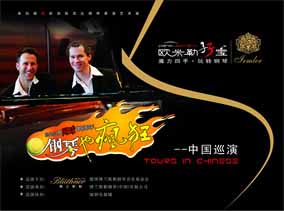 10年前 , 他們正式組成“歐米勒孖寶(Pianotainment)” 鋼琴組合 , 那是他們走向輝煌的開(kāi)始:熟練自如的雙手在黑白分明 的琴鍵上翻飛跳躍,一曲曲快樂(lè)的音符就從他們的指間順流而出 。隨著歐米勒孖寶5張CD的成功問(wèn)世 , 他們隨之聲名鵲起 , 在柏林 、巴黎、倫敦、紐約、拉斯維加斯等世界著名大都市的國(guó)際舞臺(tái)上 演奏。如今歐米勒孖寶已蜚聲樂(lè)界 , 成為歐美鋼琴明星,給古老的 鋼琴演奏形態(tài)注入了新的活力 , 并多次摘走包括英國(guó)牛津鋼琴挑戰(zhàn) 賽的“最佳創(chuàng)意獎(jiǎng)”等在內(nèi)世界各地的大小獎(jiǎng)項(xiàng) , 藝術(shù)事業(yè)蒸蒸日 上,如日中天。