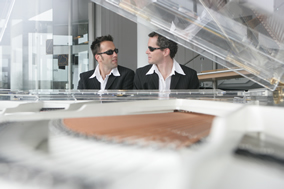 您見(jiàn)過(guò)用網(wǎng)球彈鋼琴嗎?一對(duì)來(lái)自德國(guó)的國(guó)際頂尖鋼琴表演藝 術(shù)家Pianotainment鋼琴組合, 他們不僅可以用手指演奏出精彩 的音樂(lè),而且還可以用網(wǎng)球、拳頭等不同的花樣來(lái)詮釋鋼琴音樂(lè) , 令無(wú)數(shù)的觀(guān)眾在臺(tái)下如癡如醉激烈歡呼 , 表演現(xiàn)場(chǎng)喝彩的聲浪此起 彼伏,他們 用帶有魔力般的 四手玩轉(zhuǎn)鋼 琴,因此他們獲得全球鋼 琴頂級(jí)品牌—被譽(yù)為德國(guó)國(guó)寶的博蘭斯勒( blüthner )鋼琴旗下 歐米勒鋼琴代言人的殊榮 , 并把他們鋼琴組合的中文名命名為“歐 米勒孖寶”。他們獨(dú)具魅力的鋼琴演奏風(fēng)格讓更多的人開(kāi)始喜歡鋼 琴并成為鋼琴愛(ài)好者,原來(lái)鋼琴也可以與你這樣的親近與你這樣的 貼近 , 一下子拉近鋼琴與大眾之間的距離,這也充分體現(xiàn)了博蘭斯 勒旗下源于 1818 年德國(guó)萊比錫的歐米勒鋼琴的設(shè)計(jì)理念——傳 承經(jīng)典,啟示未來(lái)。