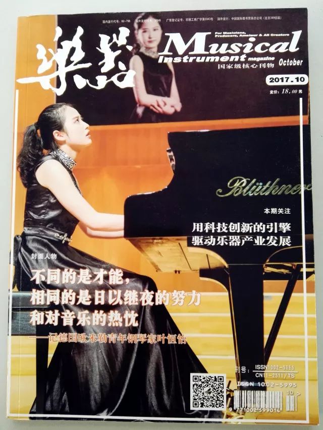 歐米勒青年鋼琴家葉恒怡榮登《樂器》雜志2017.10期封面